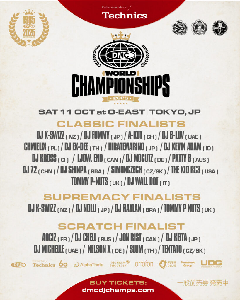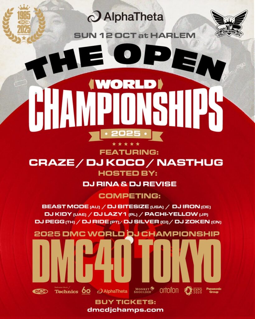 For the first time in its 40-year history, the DMC World DJ Championships will take place in Asia, with the 2025 World Finals being held in Tokyo, Japan. Since its launch in London in 1985, DMC has been the world’s leading stage for competitive DJ performance. This milestone year will feature world-class competition, international showcases, and tributes to hip-hop culture.
