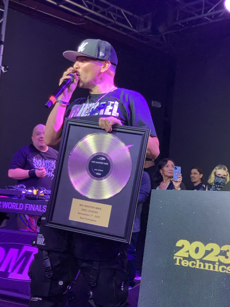 Renowned turntablist Mix Master Mike, co-founder of the Invisibl Skratch Piklz and former DJ for the Beastie Boys, was honored with the prestigious DMC Legend Award at the DMC World Finals in San Francisco on November 3. The event, hosted at The Midway by DJ Rhettmatic and DJ Babu, featured electrifying performances from Dilated Peoples, UZ, Invisibl Skratch Piklz (Shortkut, D-Styles, and DJ Qbert), Kentaro, and DJ Rena.